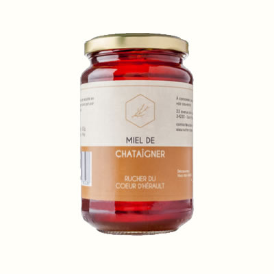 Une miel brun, légèrement acidulé, produit dans la haut Languedoc ou les abeilles ont pu butiner sur des fleurs de ronces, bruyère Erica et châtaignier.